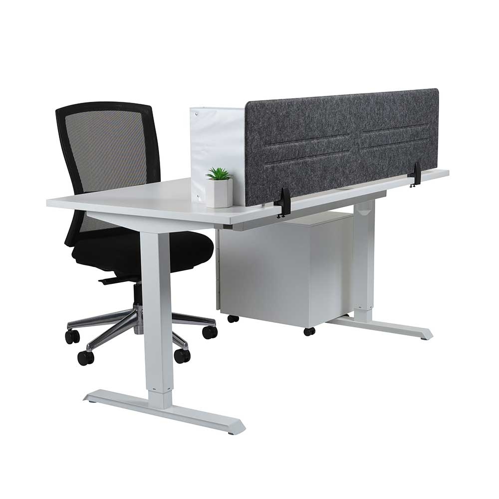 A new addition to our sit stand electric desk range comes the new Hedj privacy desk screen. Give yourself a little more privacy when you work. Available in one width and four great colours its a simple addition to any desk. Easy to install.