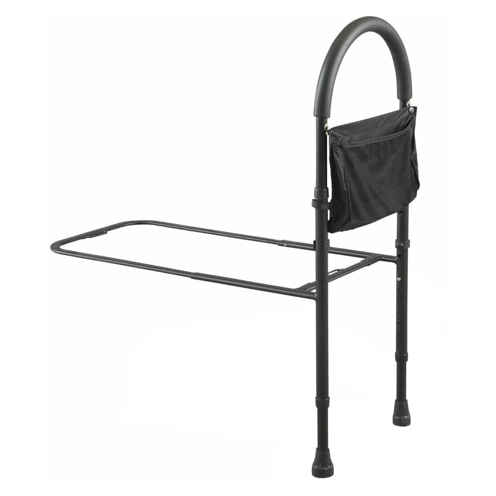 The DJMed Height Adjustable Hand Bed Rail with Pouch allows you to safely and securely get into or out of bed. It easily adjusts to fit any bed size and shape, and the rail provides additional stability for seniors, anybody with unsteadiness or those recovering from surgery or injury. Includes a pouch for storage of essentials like remotes, books, glasses etc..