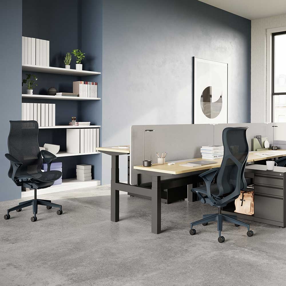 Cosm is Herman Miller's new sophisticated ergonomic chair design that instantly responds to your body, movement and posture, to provide natural balance and total support. Its Auto-Harmonic Tilt, Intercept suspension, and flexible frame work together to give you a feeling of weightlessness. It doesn't matter if you are 5' or 6'3", or sitting for eight minutes or eight hours. Cosm is the chair for everyone.Â