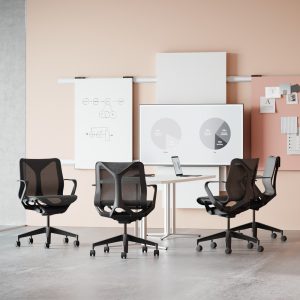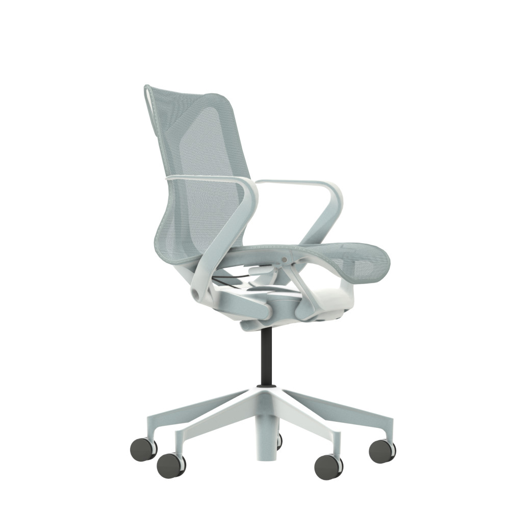 Cosm is Herman Miller's new sophisticated ergonomic chair design that instantly responds to your body, movement and posture, to provide natural balance and total support. Its Auto-Harmonic Tilt, Intercept suspension, and flexible frame work together to give you a feeling of weightlessness. It doesn't matter if you are 5' or 6'3", or sitting for eight minutes or eight hours. Cosm is the chair for everyone.Â