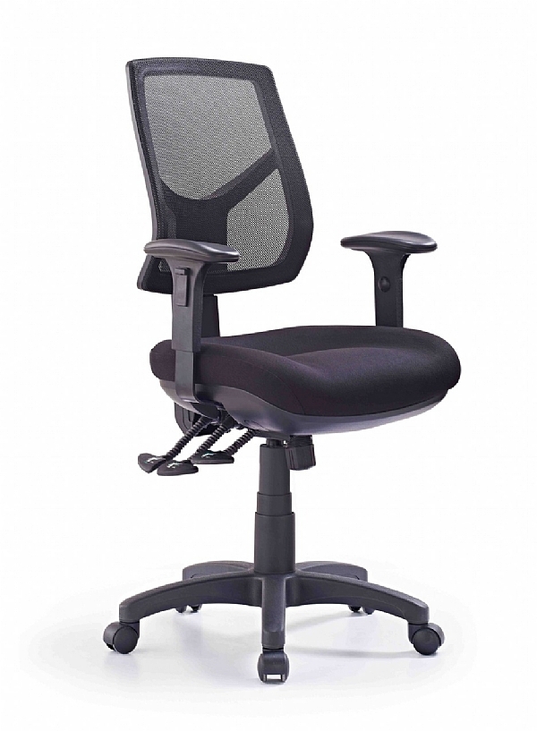 A terrific heavy duty fully adjustable eronomic chair rated to 140kgs ergonomic chair. Featuring a very comfy large moulded foam seat with contoured dual density foam making it's a great option for prolonged sitting periods.
