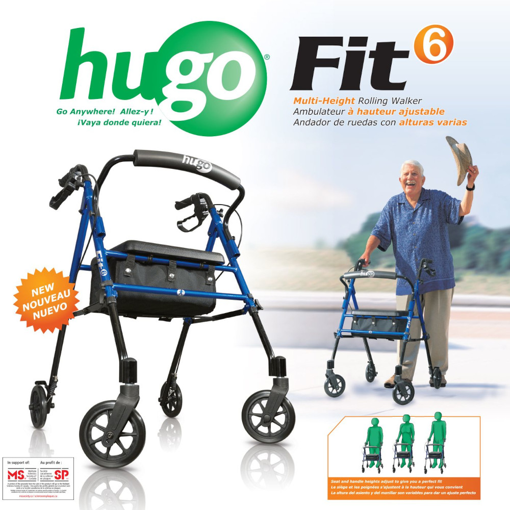 The Hugo Fit rollator is a super versatile walker with a seat, making it ideal for those who need a little help with balance or for those are easily fatigued while walking. The padded seat and backrest provide a comfortable place to rest for those rehabilitating from an injury, dealing with severe arthritis or those who have conditions that compromise their balance. The simple seat adjusts to three different height settings while the handle heights are also adjustable, making the Hugo Fit a perfect fit for anyone.