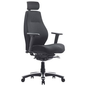 The Impact ergonomic office chair is a heavy duty multi-shift design that can take a 200kg bodyweight. It comes with a heavy duty gas lift and synchro mechanism, a seat slider, optional adjustable headrest and adjustable arms.