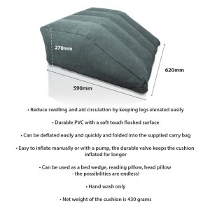 This inflatable leg wedge cushion is perfect for keeping your legs in an elevated position without having use pillows of cushions on top of one another. Designed to relieve sore knees, feet and legs it can improve poor circulation and also take pressure of that bad back.