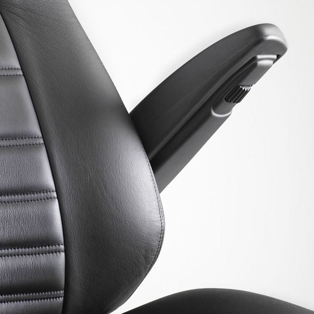 - Armrests can be tipped-up out of the way or swivelled down to fit comfortably under your desk.