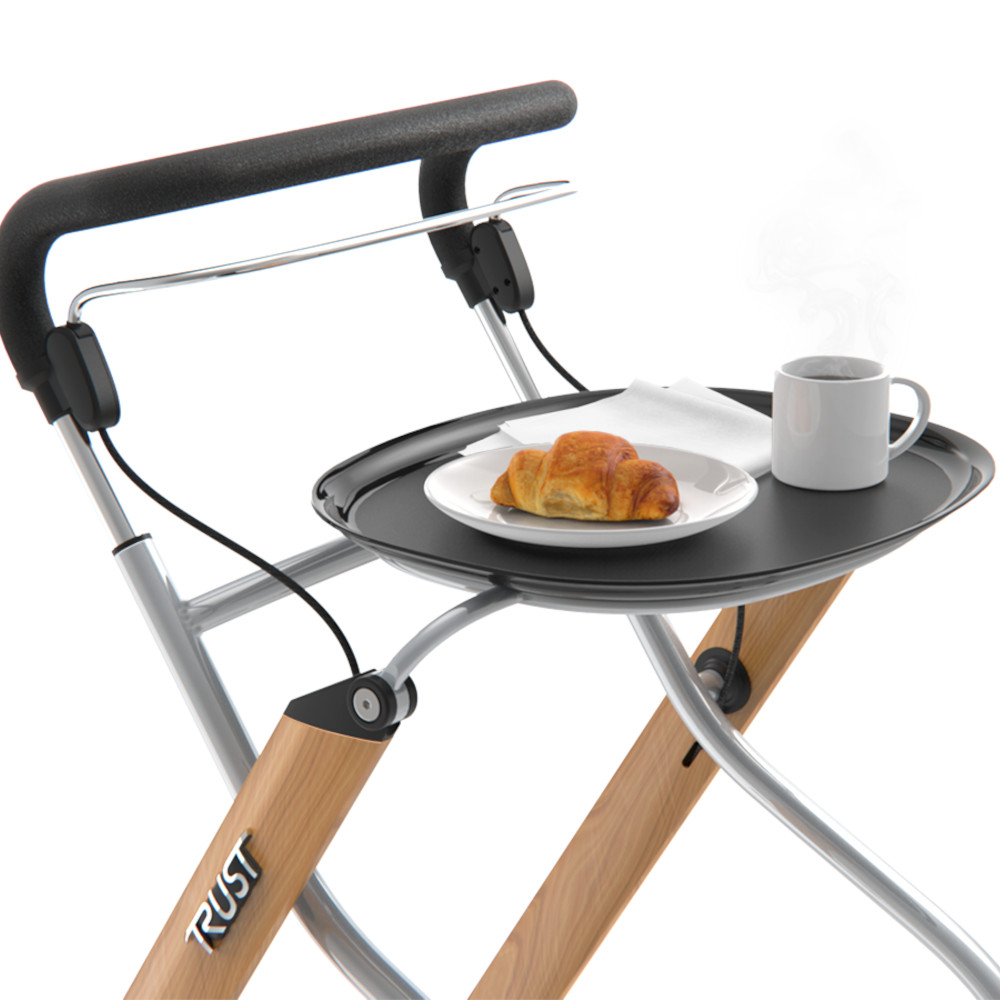 - Doubles as a kitchen trolley for carrying meals and coffee