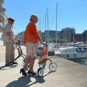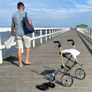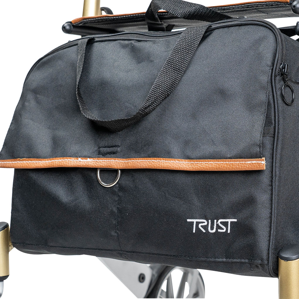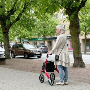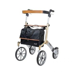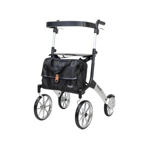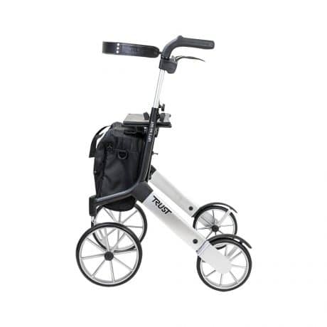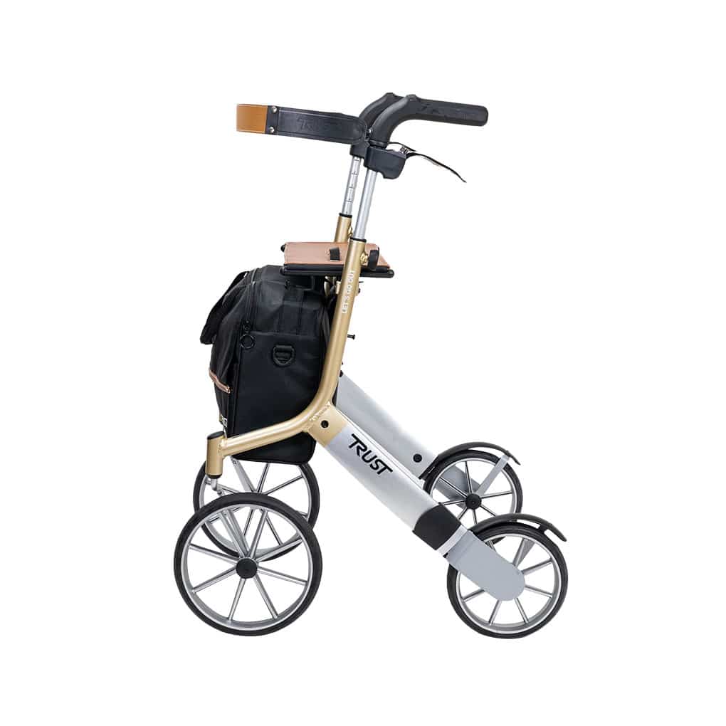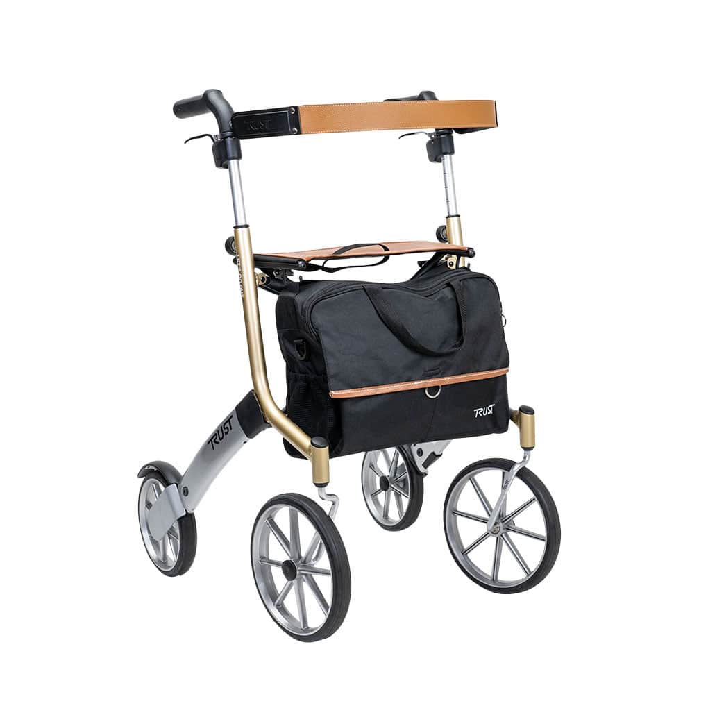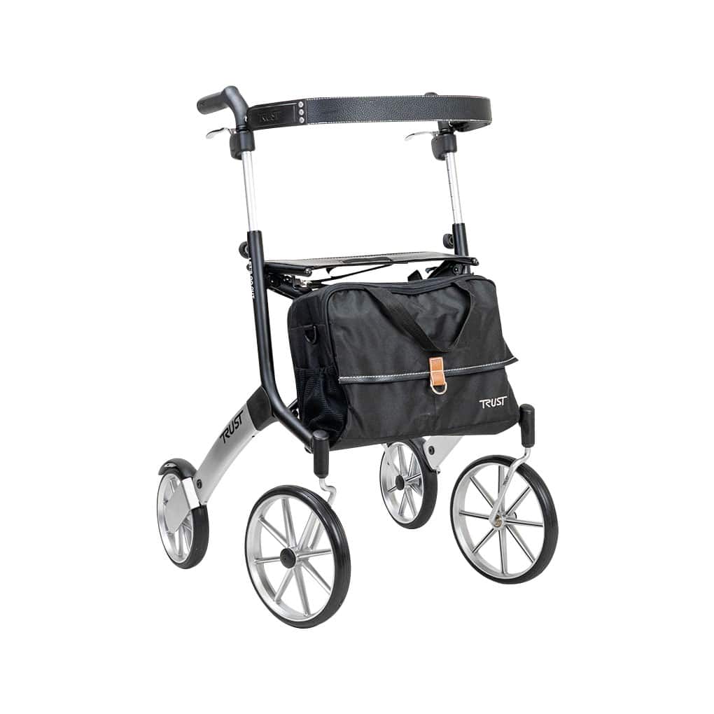 A terrific new rollator design from Swedish company Trust Care. The Let's Go Out rollator is light and elegant, both folded and unfolded. It has super X frame cross folding system which makes it so easy to fold, and it takes up little space and stands alone when folded. Has big front and rear wheels making it easy to get over curbs and other challenging terrains and surfaces.