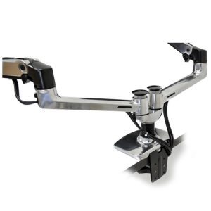 Durable polished aluminum construction! Create a fully adjustable side-by-side configuration that lifts both LCD screens up to where they’re easier to see while reclaiming valuable worksurface.