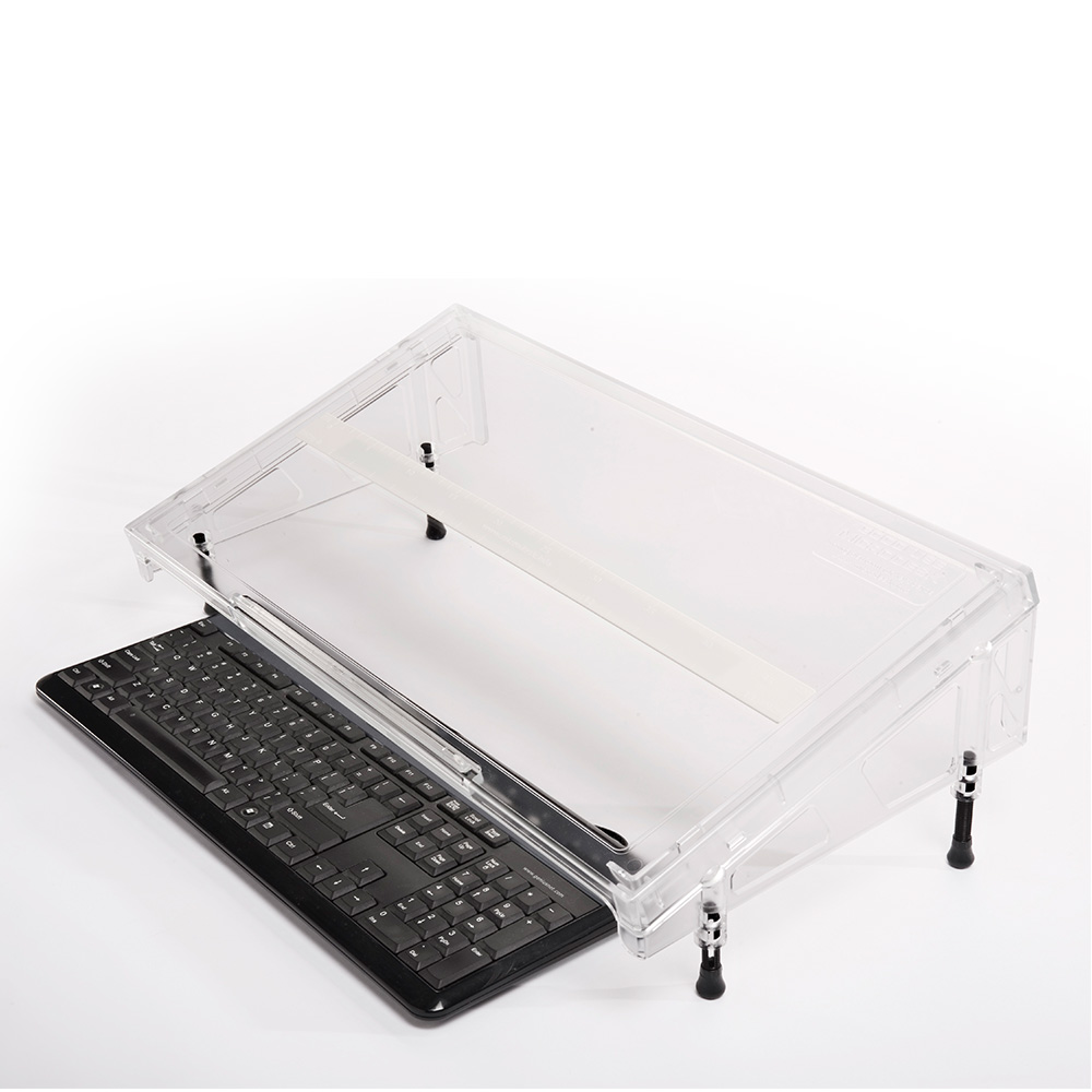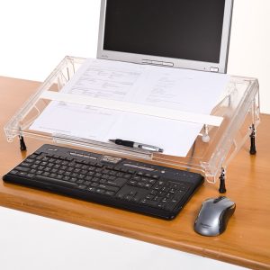 When you’re stretching and twisting at your desk you can easily strain your spine, neck and shoulders. The solution is the MicroDesk that allows you to keep your body in the correct, neutral position while simultaneously working with papers or books while typing at the keyboard.