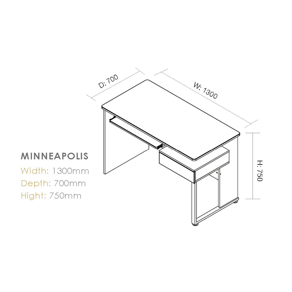 The modern Minneapolis computer desk is highly functional and specifically designed for home office use. With a retractable keyboard and mouse drawer to extend your available workspace and minimise cable management, it also has a built-in drawer. The Minneapolis is all you need for a complete home office solution, that fits with any decor.