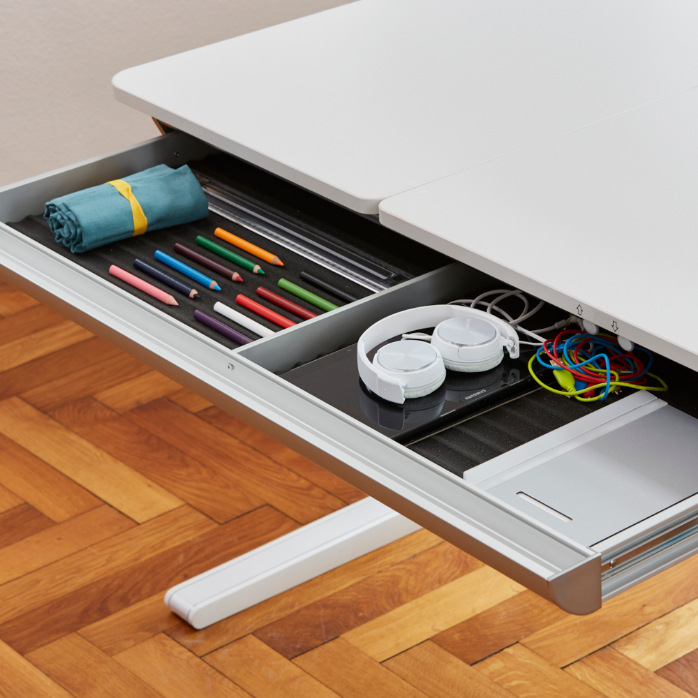 The Champion desk sets new standards for your childs bedroom. No other desk combines design, ergonomics and safety the way Champion does. The built in yo-yo device lets your child easily adjust the desk height themselves and the rounded corners add safety. The desks have tilt-adjustable tops in three versions, so both right- and left handers can create their ideal learning space. With a wide choice of color customisation and lots of storage options this is the best kids desk on the market today
