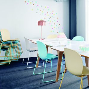RBM Noor Sledgebase is sturdier than RBM Noor 4-leg, yet still easily stackable. This timeless Scandinavian design is reflected in its simplicity and functionality – making it a chair that’s perfectly suitable in any work, study or home environment. A wide range of colours are available for the polypropylene shell, which you can mix-and-match with various steel base colours.