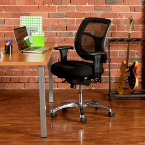 The two way black stretch fabric that allows you to really feel the foam, and the mesh back gives the chair a really contemporary look. The mesh back with its ratchet height adjustment means you position the lumbar support wherever you want it.
