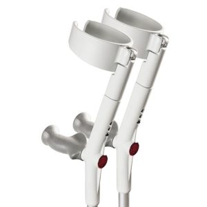 The Rebotec Safe-In-Anatom-Soft are height adjustable forearm crutches that are designed with anatomically shaped handles. The partially enclosed forearm cuff with hinge improves mobility. Available in a variety of colors, and sold as a pair (2pc).