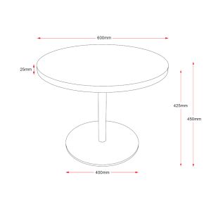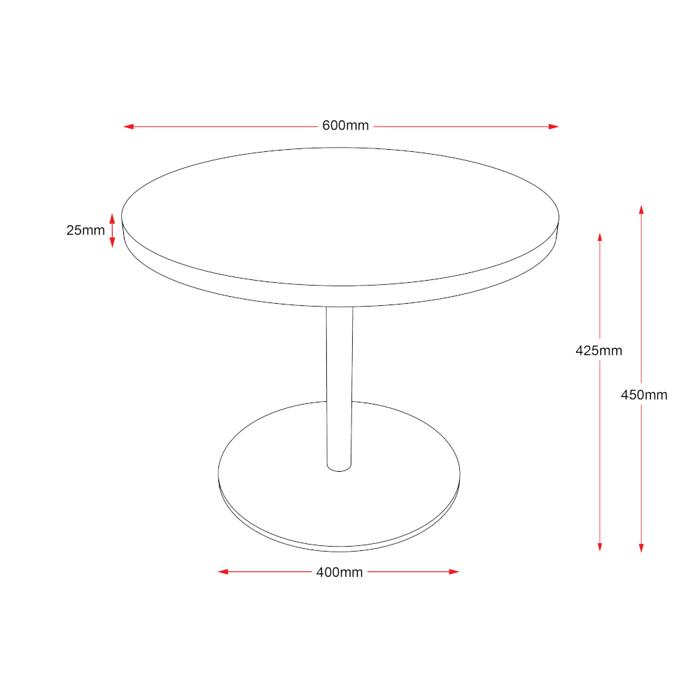 The Rapidline round, disc base coffee table has a 600mm round top with a flat disc base that sits flush to the floor. With a choice of four top finishes and 3 base colours, it comes with a 5 year warranty.