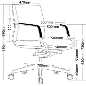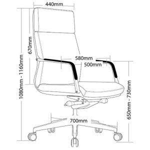 - High back size 440mm wide x 670mm high