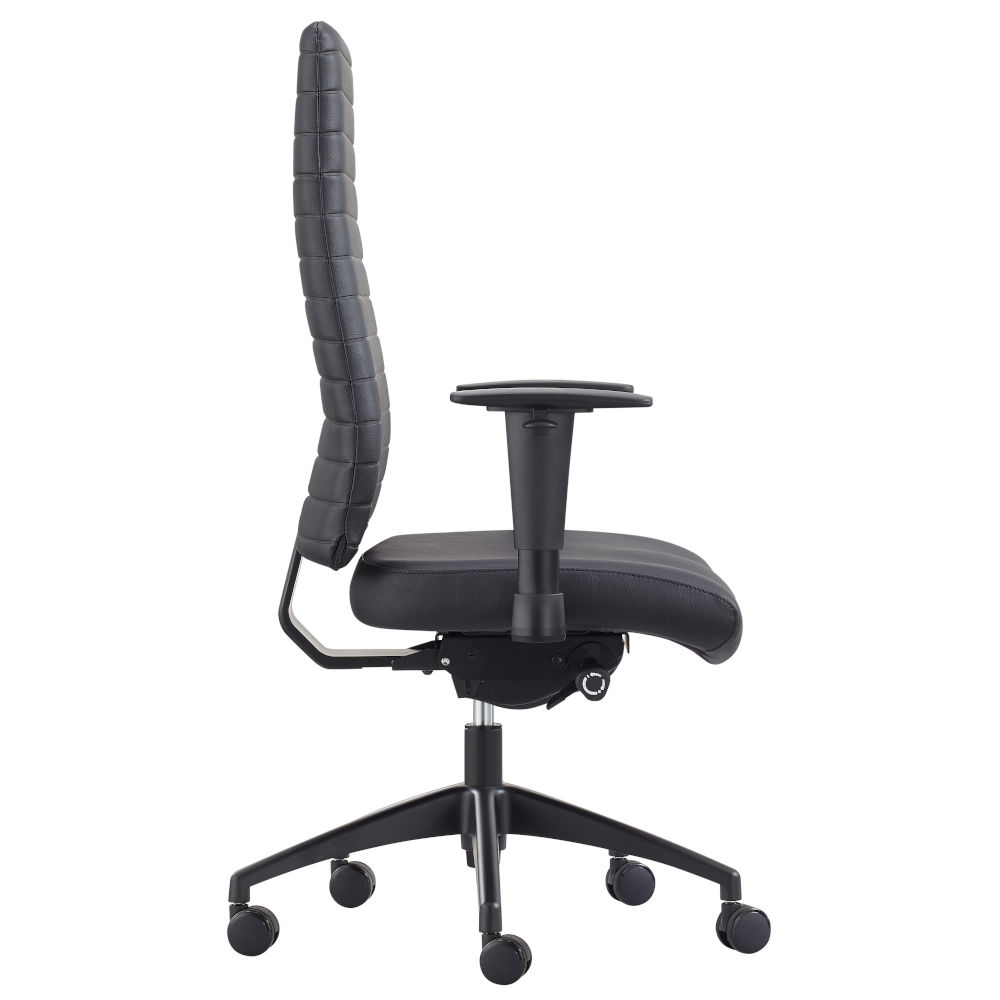 The Siena executive chair has a modern look finished in a sleek PU black upholstery. Ideal for your corporate office environment, a boardroom or conference room. With a syncho mechanism and ergonomic adjustability you can choose a high or medium back version to suit.