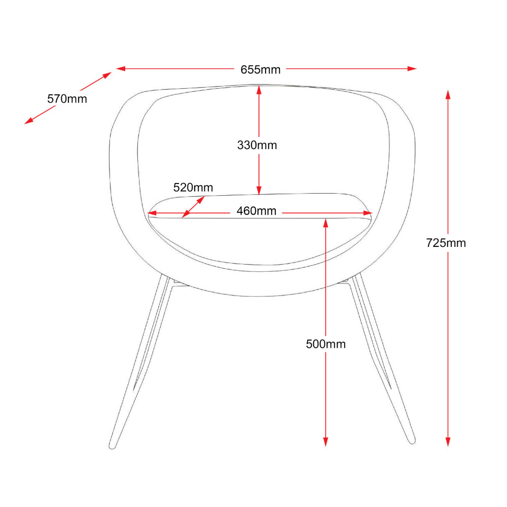 - Overall dimensions: 725mm H x 655mm W x 570mm D