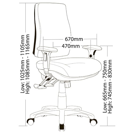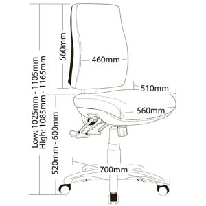The Spot ergonomic chair is a super upholstered 3 lever adjustable chair with a 140kg user rating. Comes with or without arms and features a large seat and a heavy duty mechanism for the larger frame. Features molded foam seat and back for long term sitting comfort.