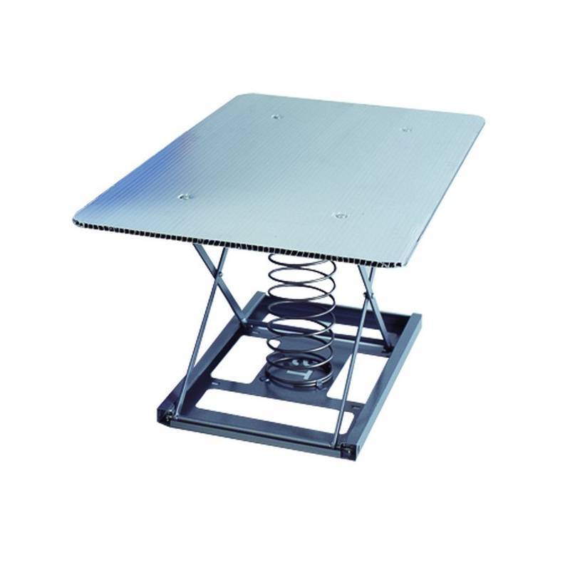 This spring loaded base helps assist in minimising bend injuries by using a spring-loaded base (25, 50 or 100kg spring), with a fully automatic spring scissor mechanism. No power required. Automatically maintains the top load at an ideal height.