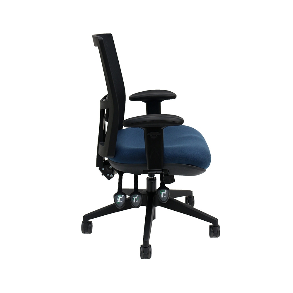 - New improved 3 lever independent mechanism with adjustable seat height, seat tilt and back angle