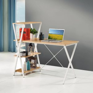 The Texarkana computer desk with side shelving is a terrific home office work solution. With intersecting shelves and desktop space, it creates a super modernist design that gives you quick and easy access to all your bits and bobs, and it has abundant storage space in a highly compact layout.