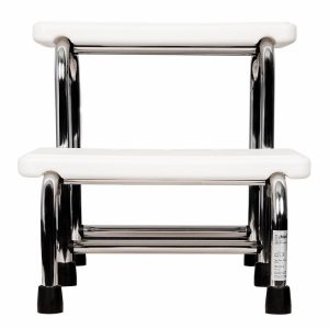 - Rubberized hand grips give you added support when getting up and down from the step stool.