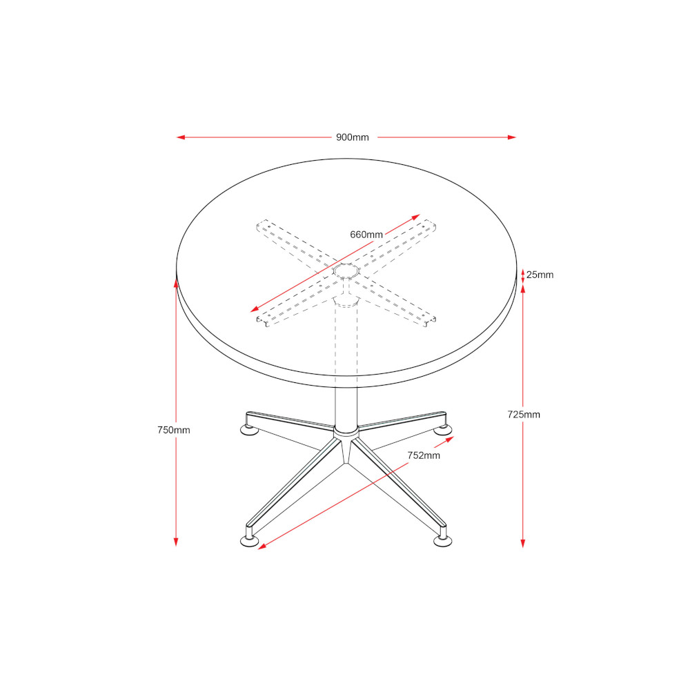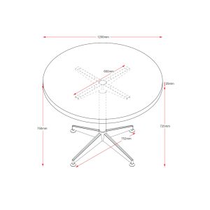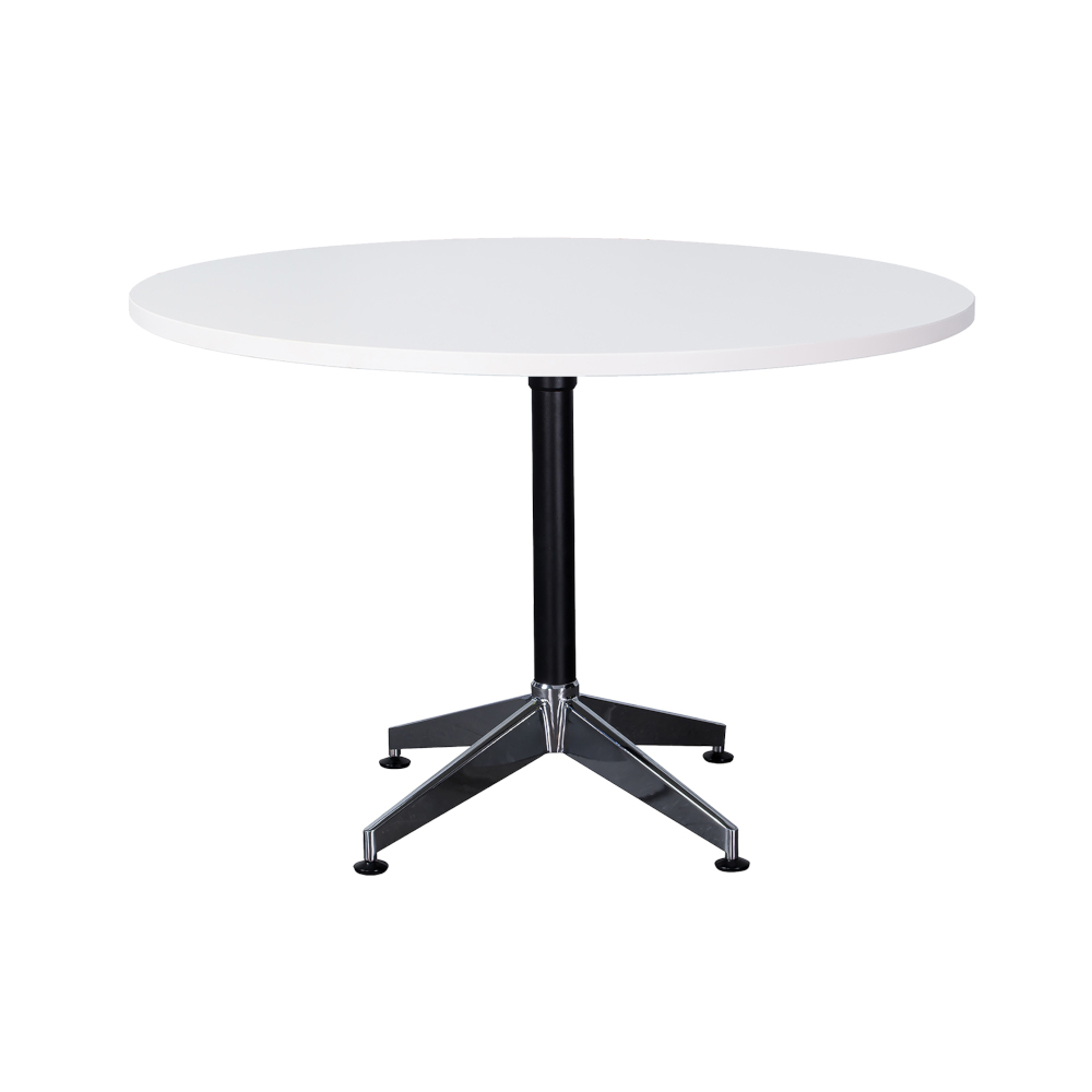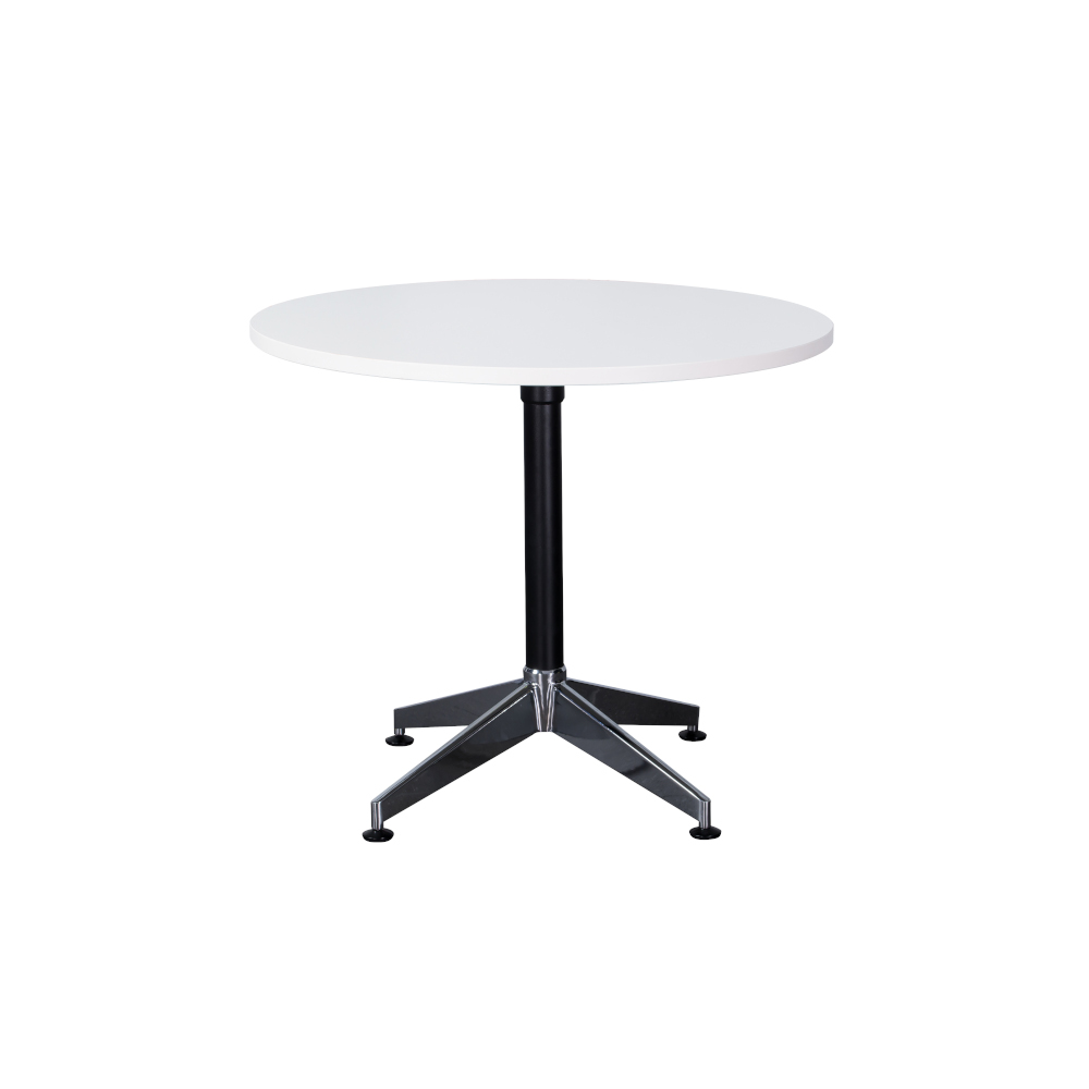 The Rapidline Typhoon round meeting table suits any modern office environment, and comes in two sizes, a 900 and a 1200mm diameter, all with a modern black stem and a polished aluminium 4 star base. Backed by a 5 year warranty.