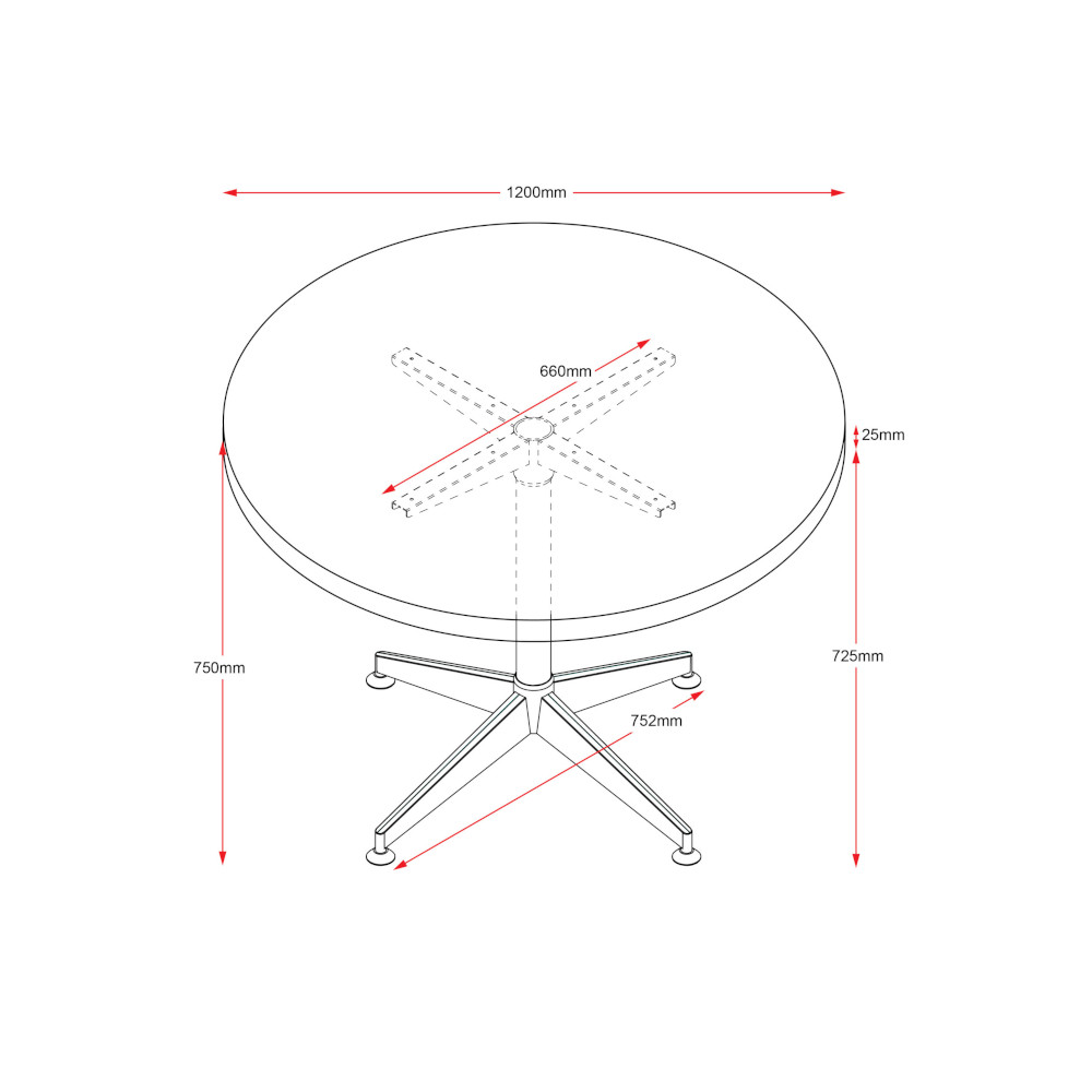 - Top 1200 diameter x 750mm H