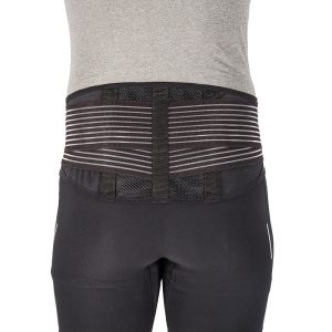 Wrap around the waist with metal stays positioned on either side of the spine.