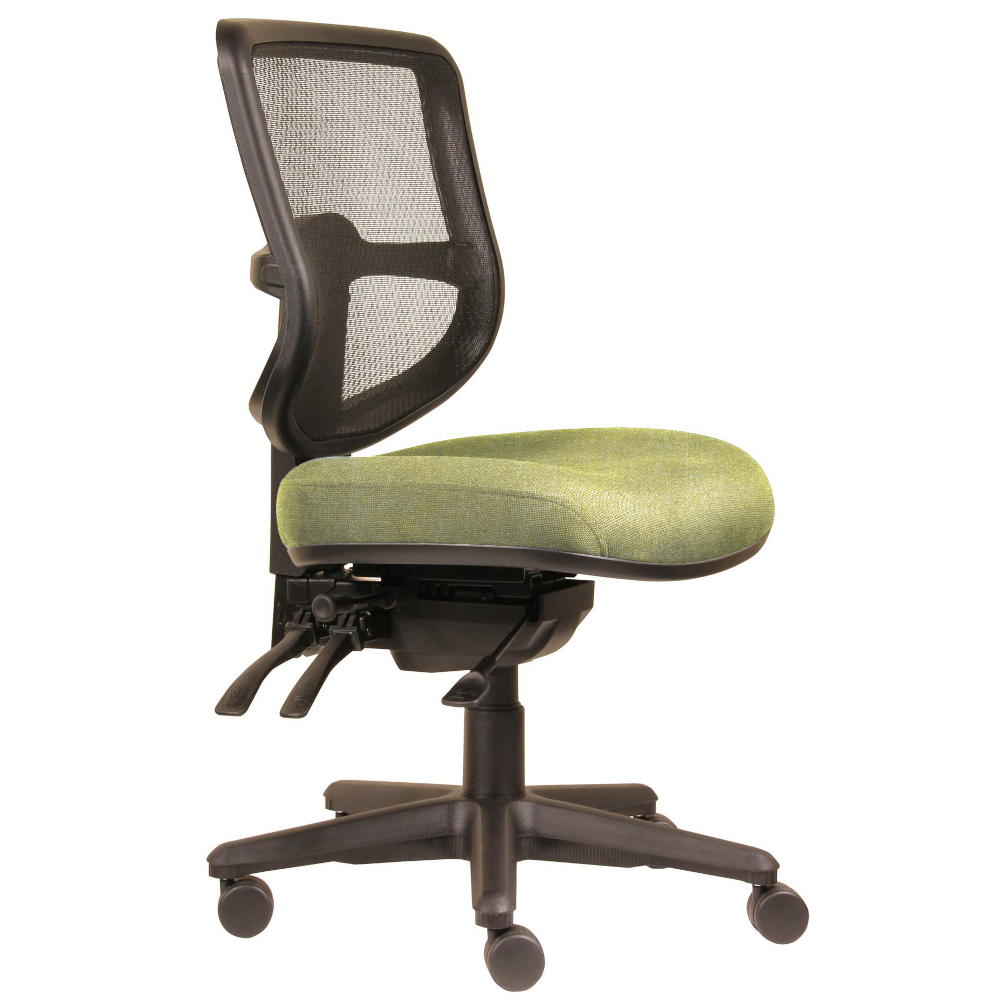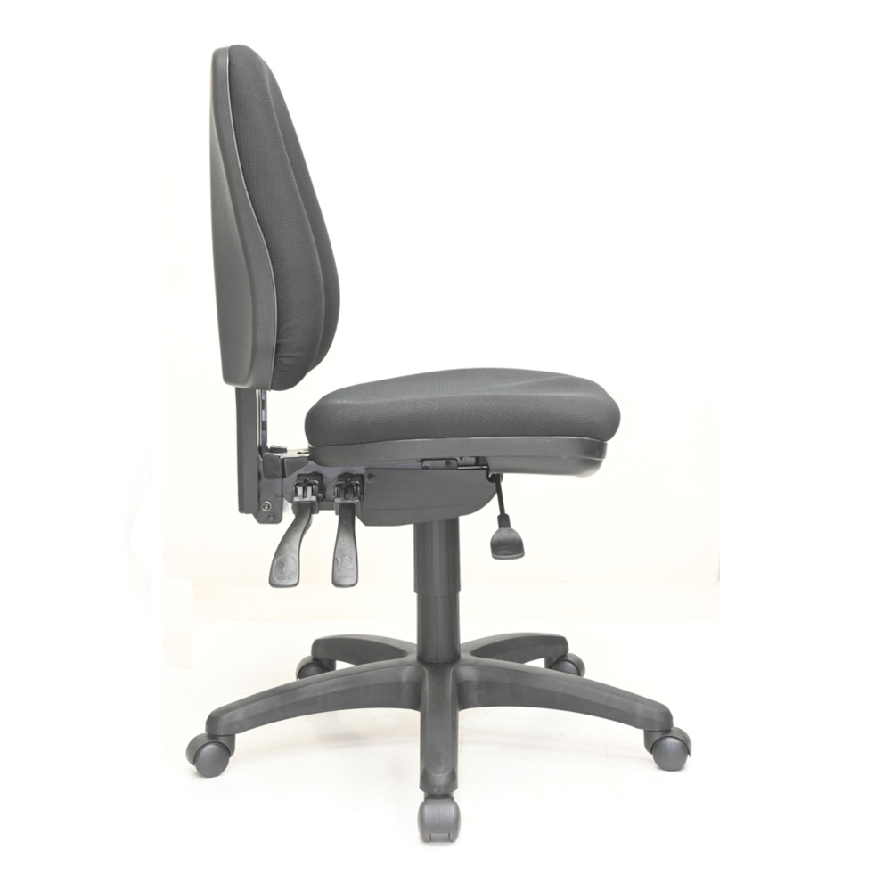 The Werk 350 high back ergonomic chair has a strong 3 lever mechanism and manual back height adjustment. Featuring a high density moulded foam seat for extra comfort and a pelvic tilt seat angle adjustment with optional armrests.