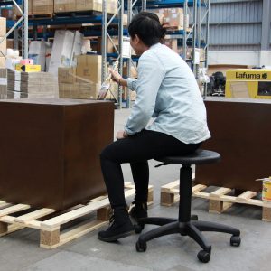 The WERK BX stool features a height-adjustable seat, with a single lever mechanism for easy adjustment. The seat swivels 360 degrees. Comes with casters, and glides are available as an optional extra if required.