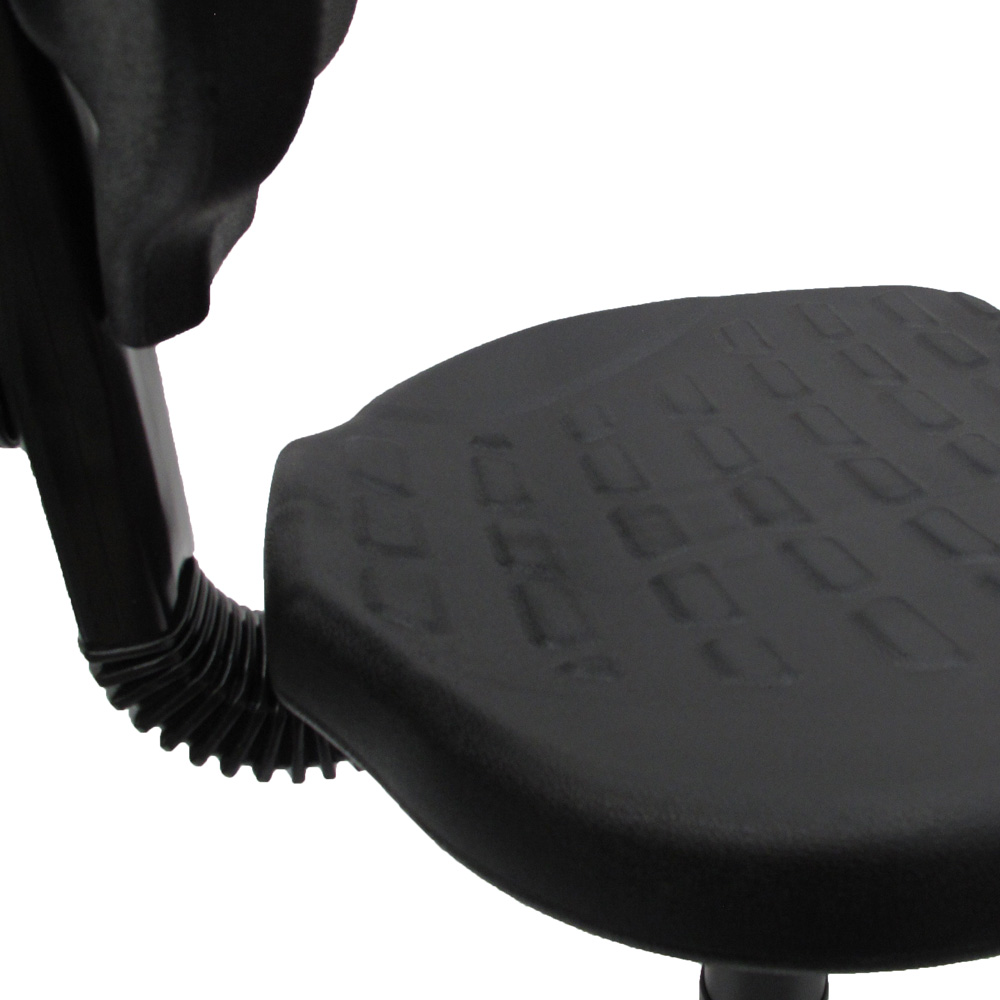 The polyurethane construction makes the chair water and stain resistant, ideal for static sensitive areas. The chair seat is durable, yet comfortable for long terms sitting.