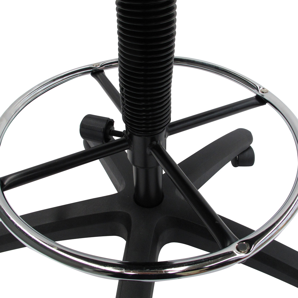 Complete with pneumatic seat height adjustment and back height adjustment, its 18" chrome height adjustable footring and heavy duty nylon base with twin wheel casters, means it's made to last. This chair does not come with arm rests.