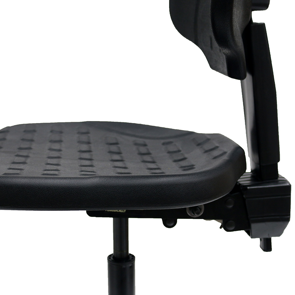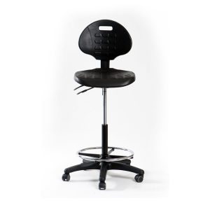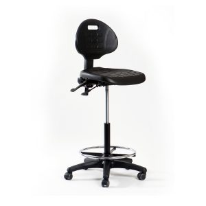 The polyurethane construction makes the chair water and stain resistant, ideal for static sensitive areas. The chair seat is durable, yet comfortable for long terms sitting.