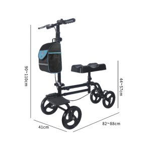 The knee walker includes a leg pad with a channel that provides stability and comfort, while the sturdy dual frame is steerable for increased maneuverability. The knee walker’s tiller can be easily folded for storage and transportation and its height can be adjusted without the need for tools.